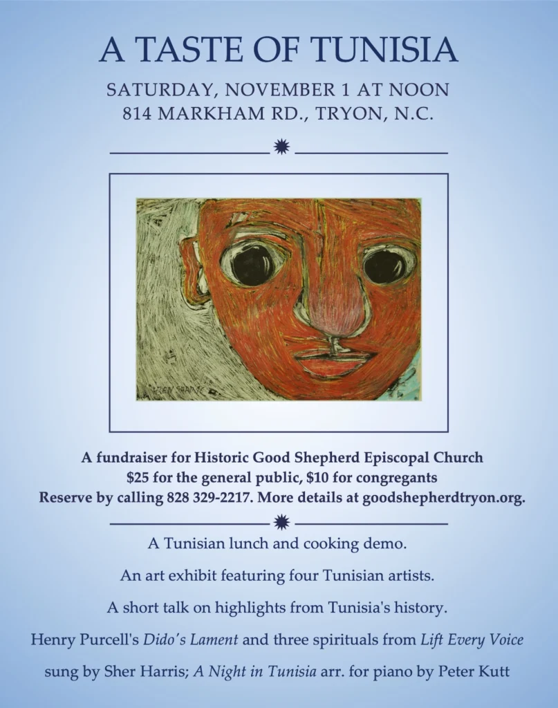 This fundraising event combines a meal, music, the visual arts, and a short talk and is inspired in part by Dr. Reverend Mother Aloha Smith’s interest in the theologians from North Africa who played a key role in the history of the Christian church. Read more about this event here.